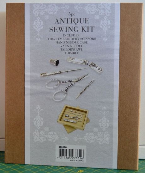 New 5 pce Antique Look Sewing Kit, Scissors/Needl e Case/Yarn Needle/Awl/Thi mble