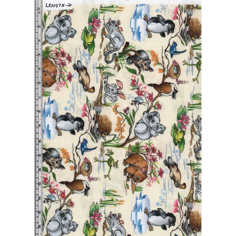 Aussie Nursery Baby Animals Cream 03, 110cm Wide Cotton Fabric 1029/03