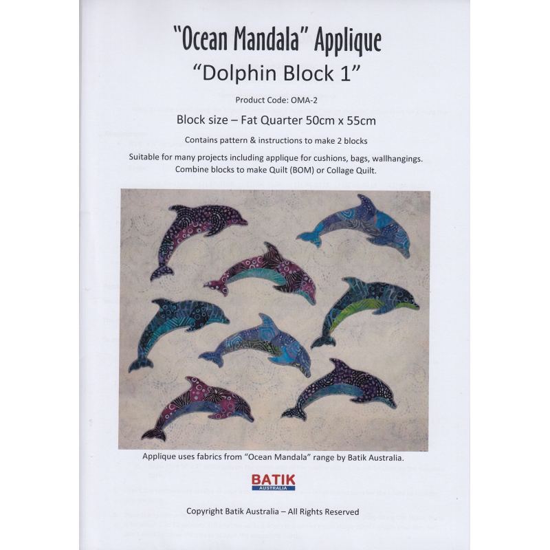 Batik Australia Applique Pattern, Ocean Mandala Dolphin Blocks