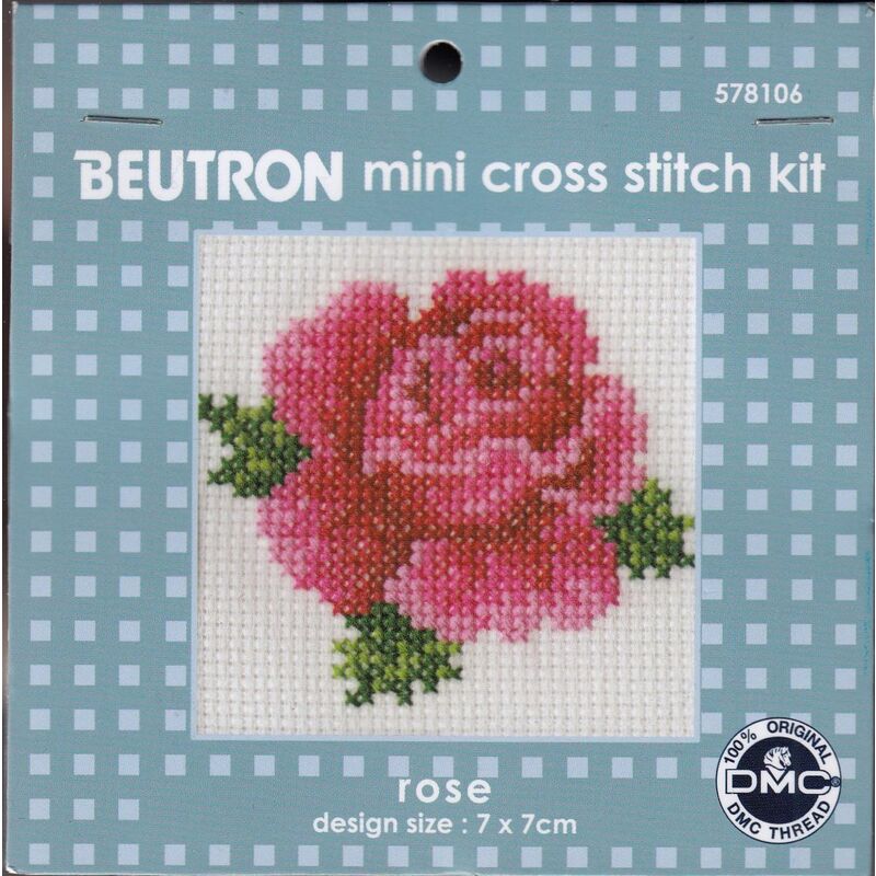 Beutron ROSE Mini Cross Stitch Kit, 7 x 7cm 14 Count Aida, 578106