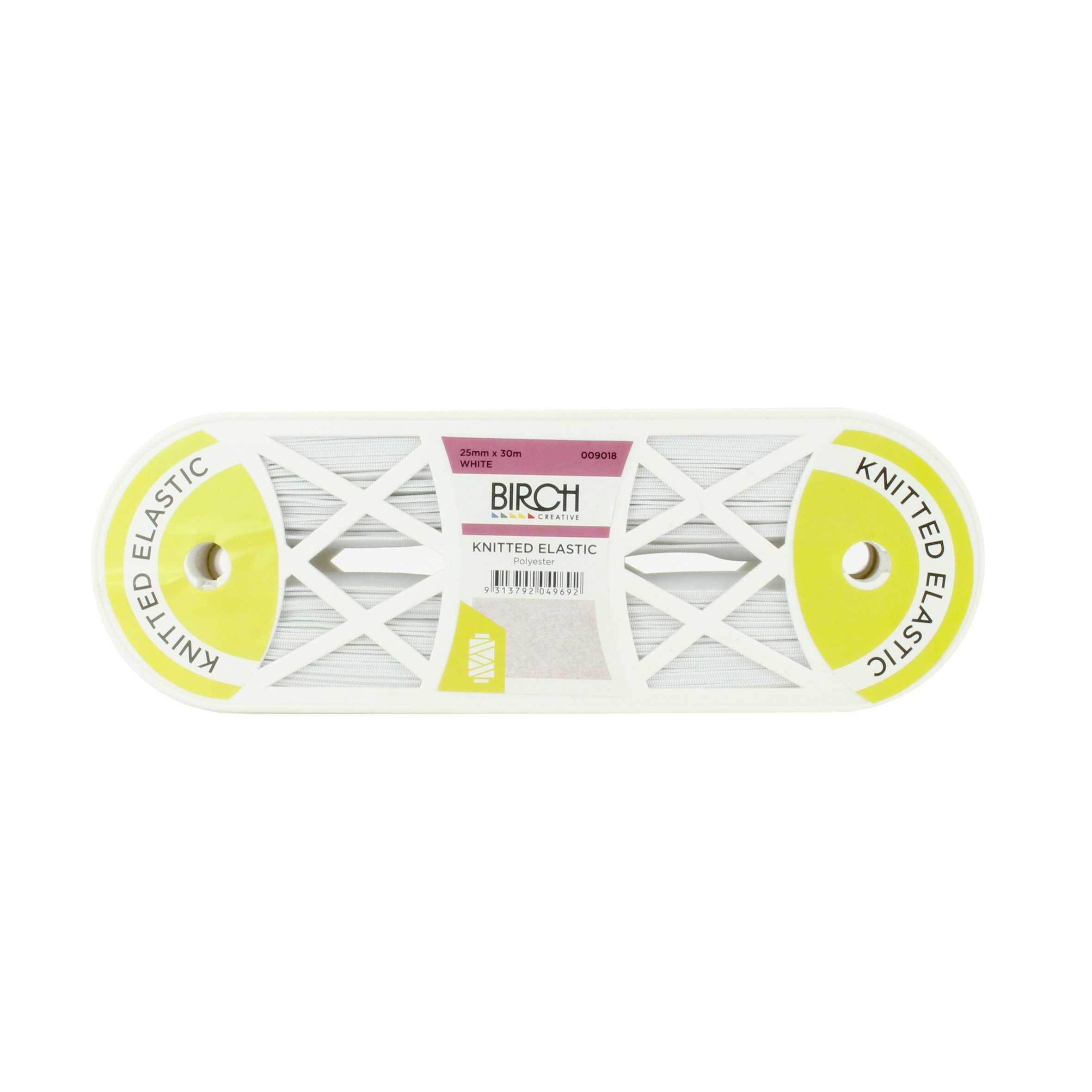 Birch Knitted 25mm Elastic White, 100% Polyester, FULL 30m Batt