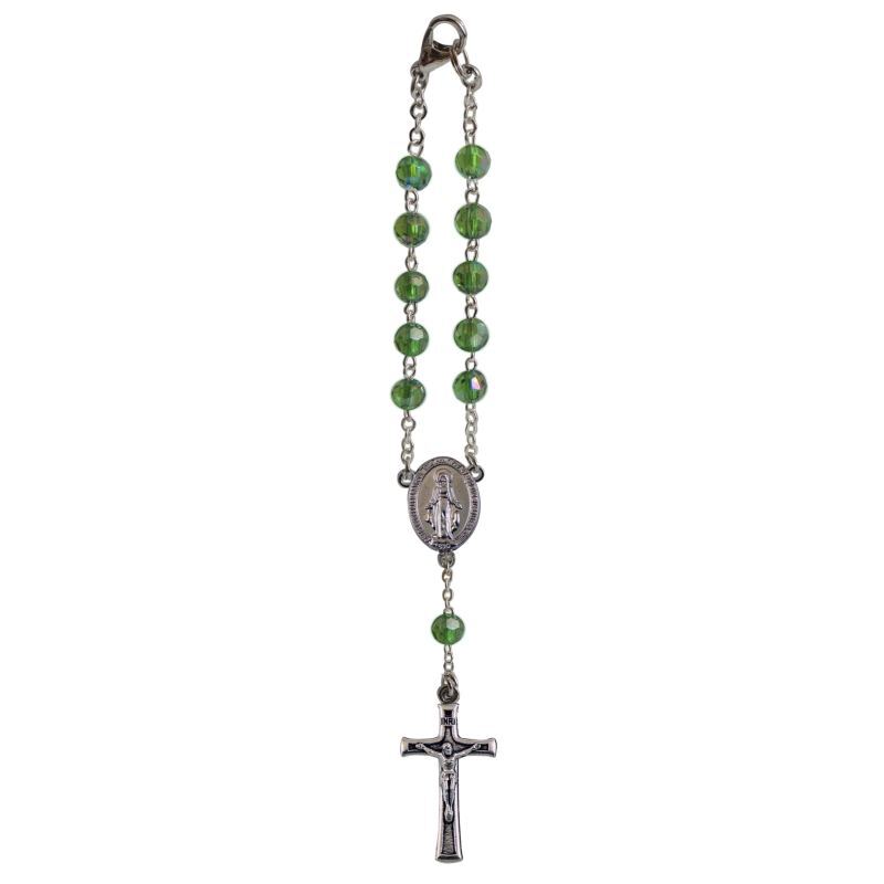 Birthstone Car Rosary 6mm Emerald AB Acrylic, A beautiful auto rosary with clasp.