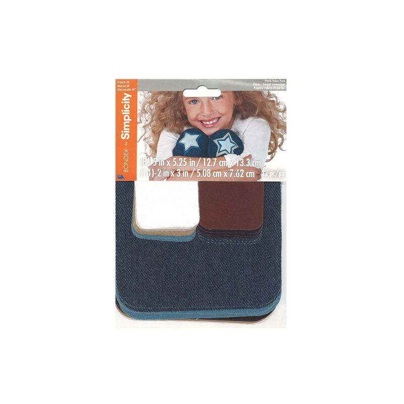Value Pack Includes 1 each 12.7cm x 13.3cm (5in x 5 1/4in) twill patch in Black, Navy, Oyster and Beige. 2 each in real fabric denim patches in Blue Denim and Faded Denim. 2 each 5.08cm x 7.62cm (2in x 3in) patches in Blue Denim, Faded Denim, Black, Navy and Beige. 1 each 5.08cm x 7.62cm (2in x 3in) patch in Oyster, White, Brown & Light Grey.