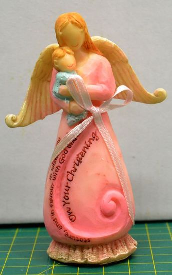 Angel Holding Boy, Christening Angel Boy Statue, 100 x 65mm, Beautiful Gift Item, New and boxed