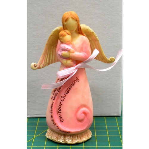 Angel Holding Girl, Christening Angel Statue, 100 x 65mm, Beautiful Gift Item, New and boxed