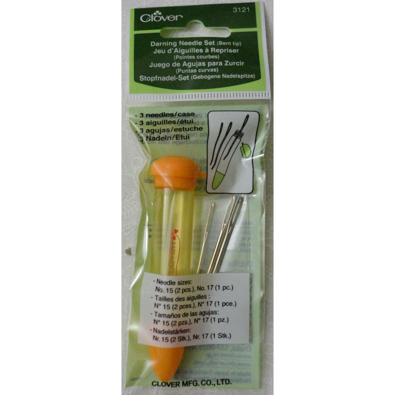 Clover Bent Tip Tapestry Needle Set, 3 Needles Per Pack, Plastic With Holder