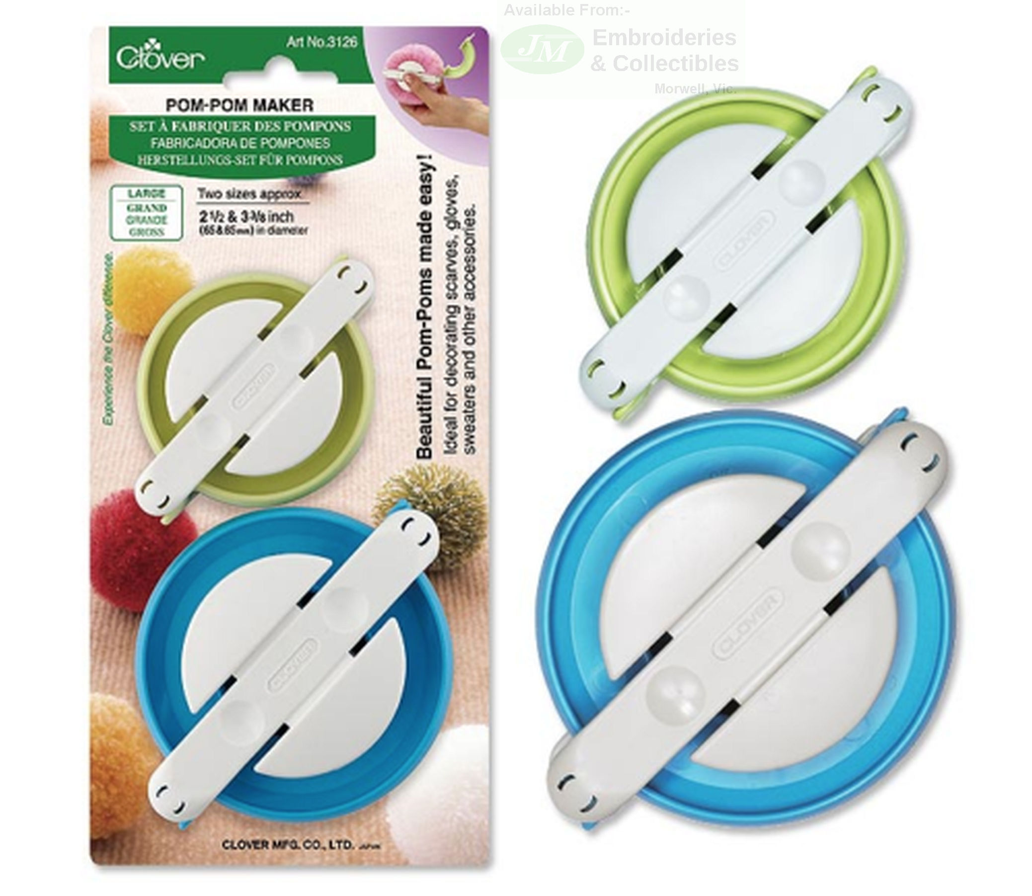 Clover Pom-Pom Maker, 2 Pack, Large 65mm & 85mm Diameter finished sizes, Fun & Easy
