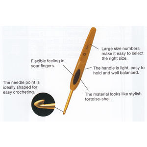 The handle is light, easy to hold and well balanced. The needle point is ideally shaped for easy crocheting.