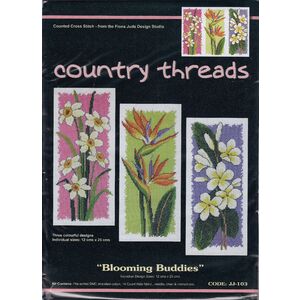 Country Threads BLOOMING BUDDIES Counted Cross Stitch Kit, 3 Designs 12cm x 25cm, JJ-103