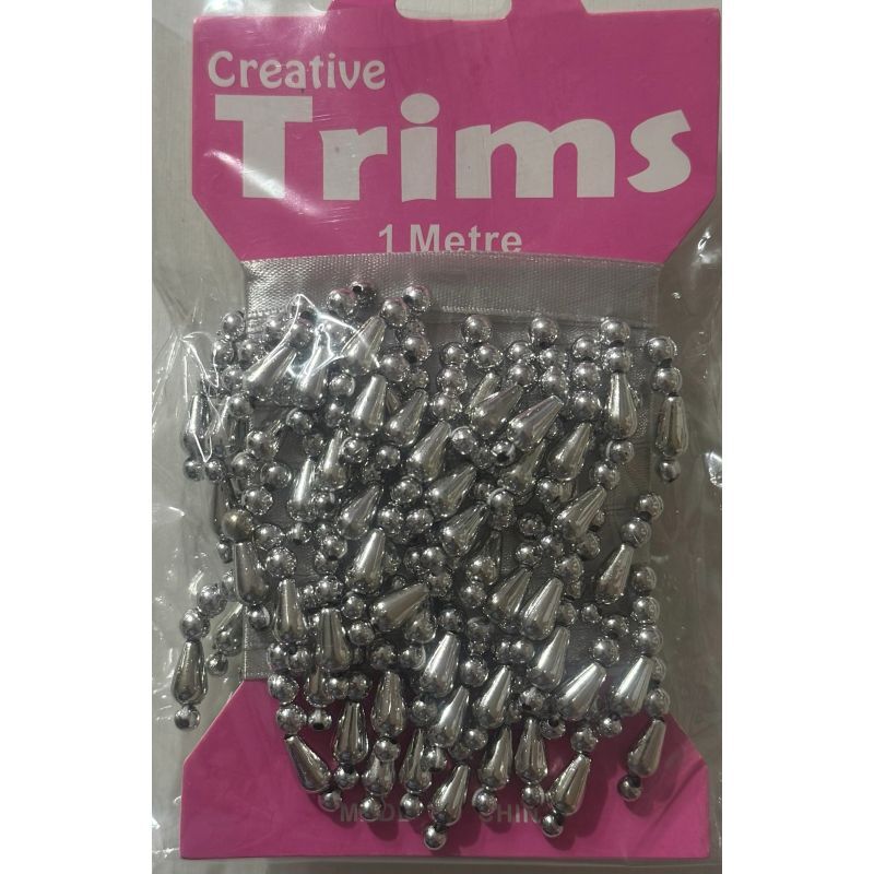 Creative Trims SILVER Pearl Drop Trim, 1 Metre Pack (Final Stock)
