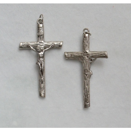 Crucifix, Silver Tone Metal, 48mm Log Look Finish, Made in Italy (Listing for 1 crucifix only)