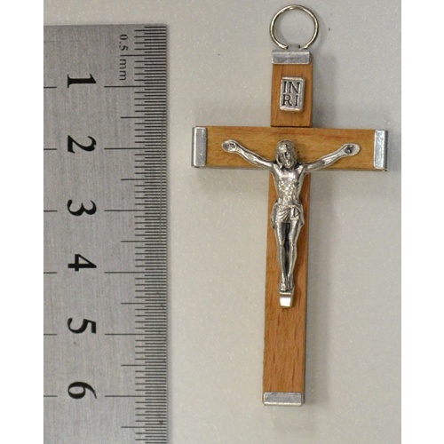 Crucifix 60mm Metal Backed Light Wood, Cross Metal Corpus Pendant, Quality Made in Itay (Listing is for one item only, unboxed)