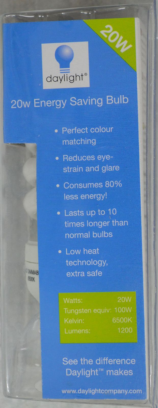 DAYLIGHT 20W SPIRAL GLOBE ES SCREW CAP BULB, COOL DAYLIGHT, Energy Saving.