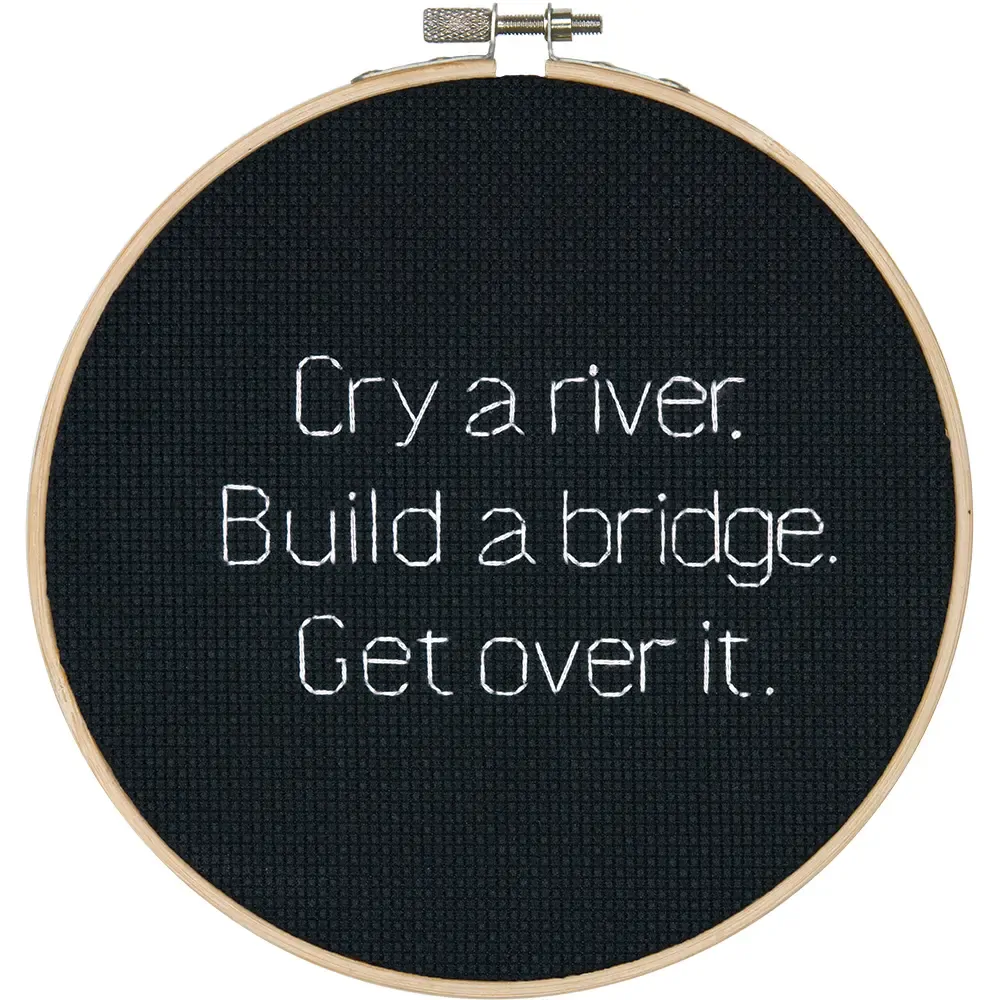 You'll never be at a loss for words with this cute quip hanging around. Cry a River by Dimensions in counted cross stitch is quick and easy to stitch, even for a beginner. Stitch one for your own home or office cubicle or give as a gift to a like-minded friend. Finished size: 6" diameter.