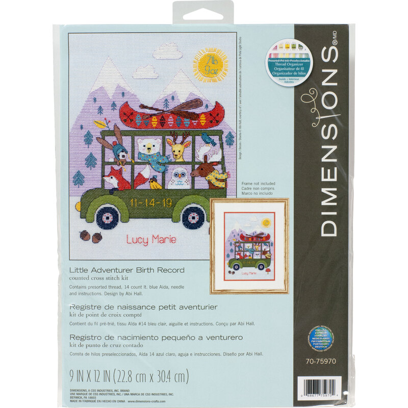 Dimensions LITTLE ADVENTURER BIRTH RECORD Counted Cross Stitch Kit 22.8 x 30.4cm #70-75970
