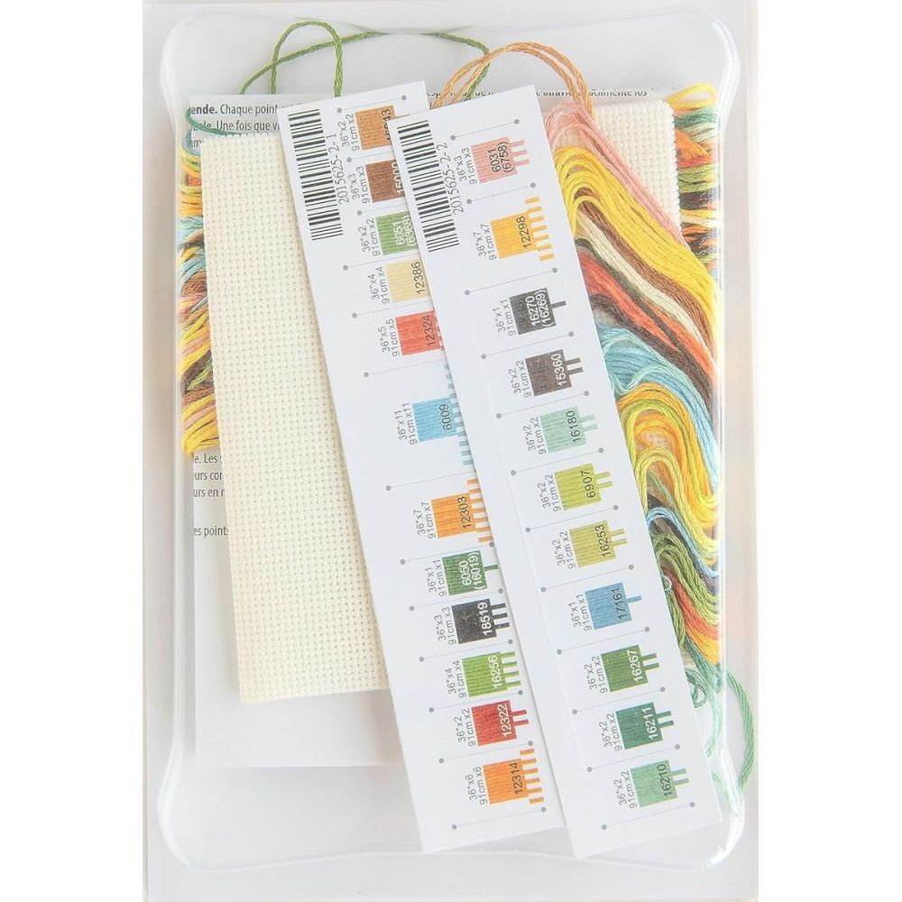 Completed design measures 6"X6". Kit contains pre-sorted thread, 18 count ivory Aida, needle and instructions (Frame & Mounts pictured are NOT included)