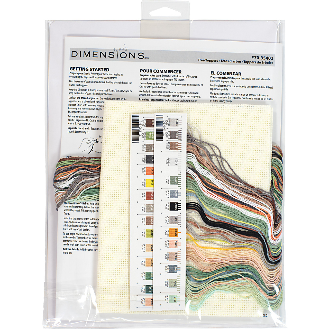 Tree Toppers is a design of three birds perched tree branches. This design is perfect for anyone that likes nature scenes or for any bird lover. Kit includes: ivory 14 count Aida fabric, color coded thread cards with pre-sorted 100% cotton embroidery floss, needle, chart and easy to follow instructions. Designed by Grace Popp / World Art Group. The finished size is 30.4cm x 22.8 cm (12"x9").