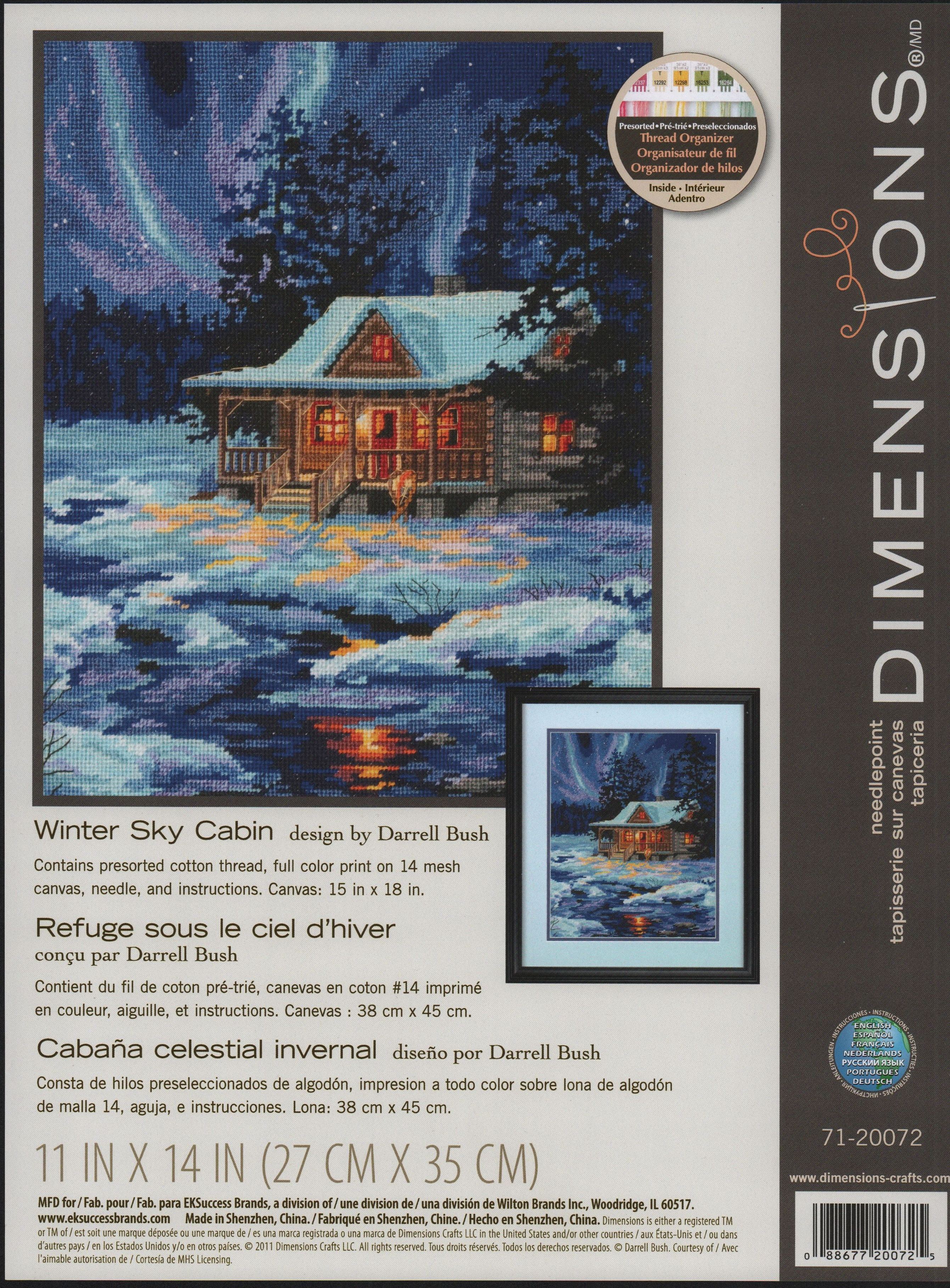Dimensions Needlepoint Cross Stitch Kit, WINTER SKY CABIN 27cm x 35cm (11" x 14") 71-20072.