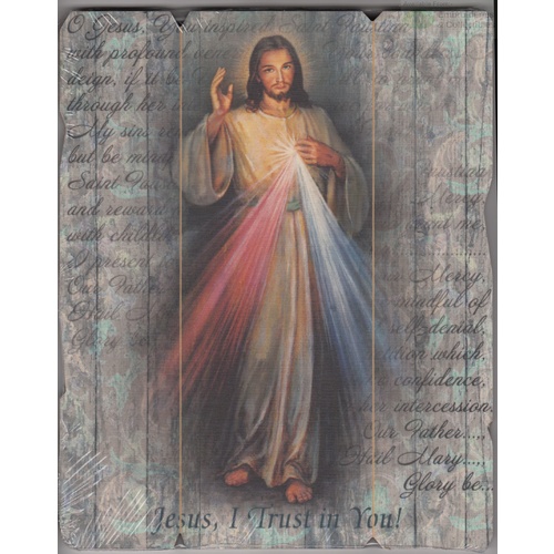 Divine Mercy, Vintage Look Wood Plaque, Crafted In Italy, 235mm x 190mm.