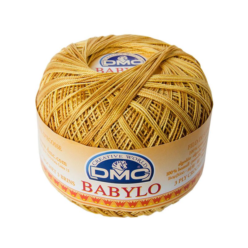 DMC Babylo is a 100% long staple cotton crochet thread. Babylo is combed, singed by flame and twice mercerised which gives it its strength, softness, silky clean and even finish making it strong and easy to work with.