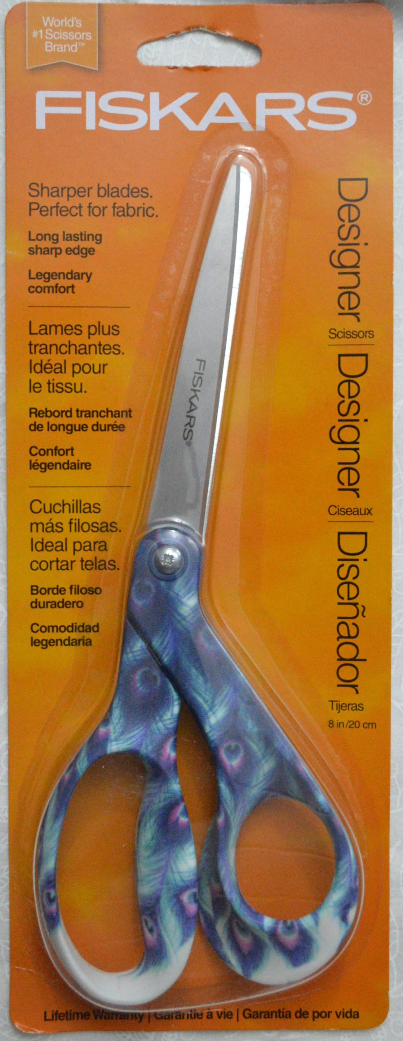 Fiskars 8" Designer Scissors, Peacock Print Ergonomic Handle