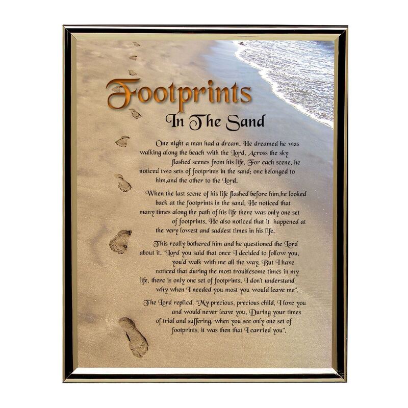 FOOTPRINTS In The Sand Print, 10" x 8" In Gold Tone Frame (Perspex front)