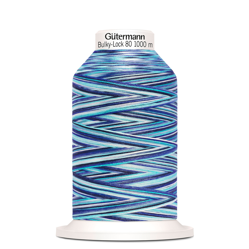 Gutermann Bulky-Lock 80, 1000m Overlocking Thread Col 9957 Variegated Light Blues