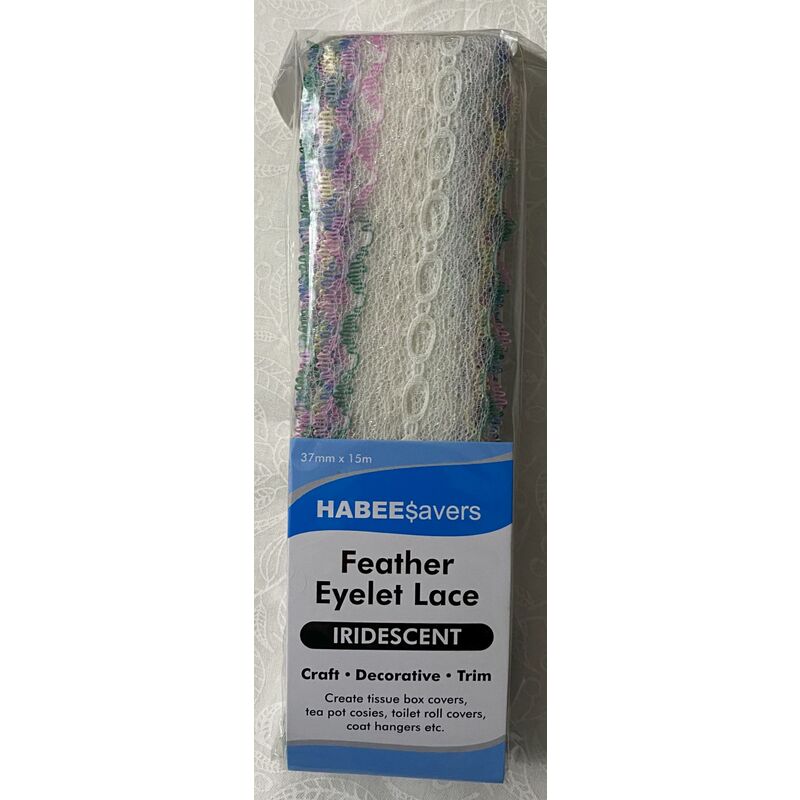 Habee$avers Feater Edge Eyelet Lace, 15 metre Pack, Iridecent Multi Colour Edge