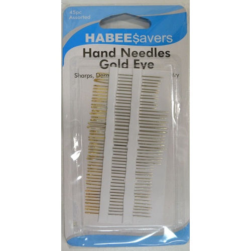 Habee$avers Gold Eye Hand Needles, Packet of 45 Assorted Needles