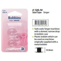 This sewing machine bobbin suits early model Singers with a domed, narrow drop-in bobbin. Note: This plastic bobbin can also be used on models originally supplied with a metal bobbin the same size.