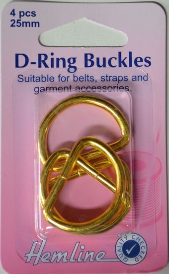 Hemline D Ring Buckles, 25mm, 4 Pcs, Gold Colour, For bags, Straps, Garment Accessories