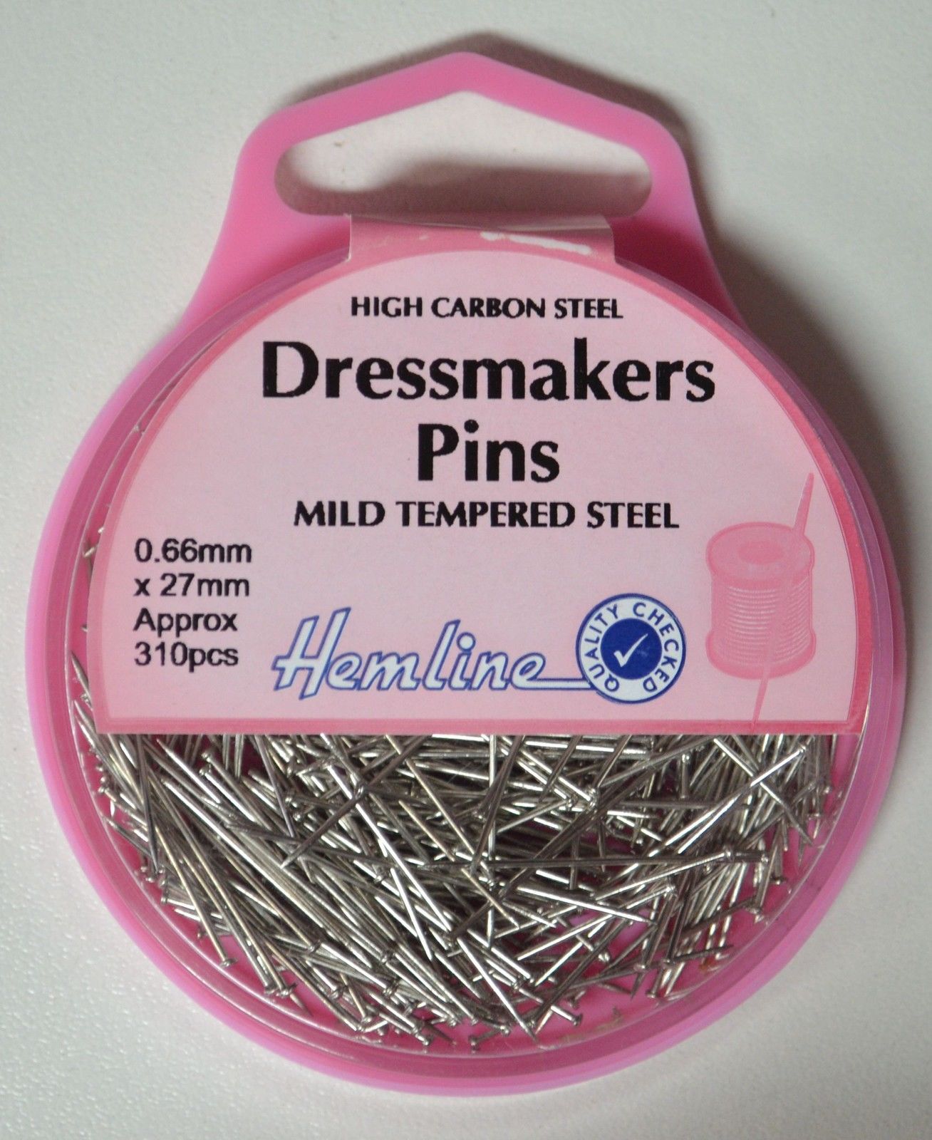 Hemline Dressmakers Pins 27mm x 0.66mm, Approx 310 Pins, High Carbon Steel, Mild Tempered in a handy Re-usable box