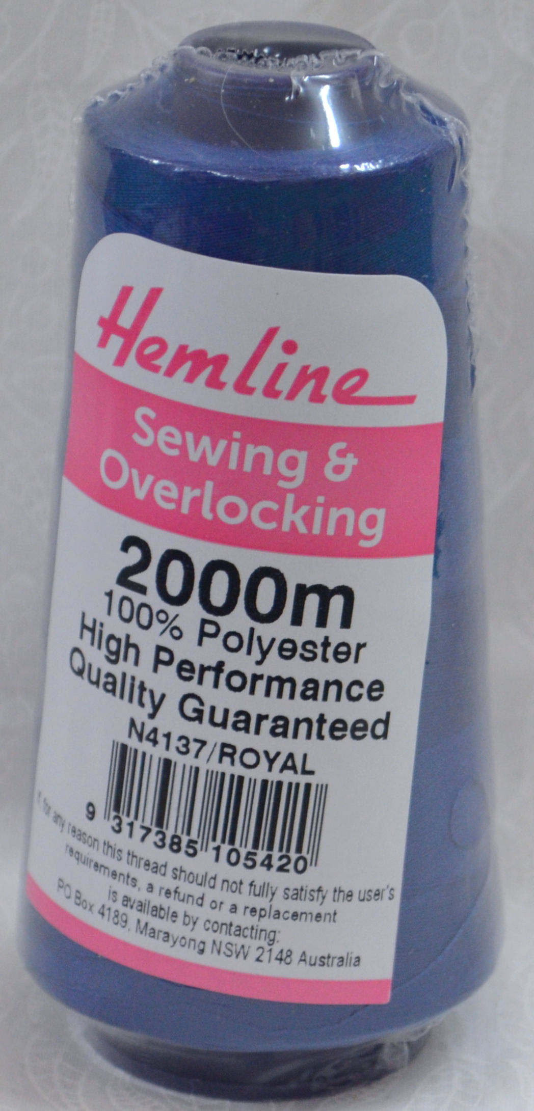 Hemline (Previously known as QA) Overlocker & Sewing Thread 2000m, ROYAL BLUE, Sewing Thread, Serger Thread, 100% Polyester