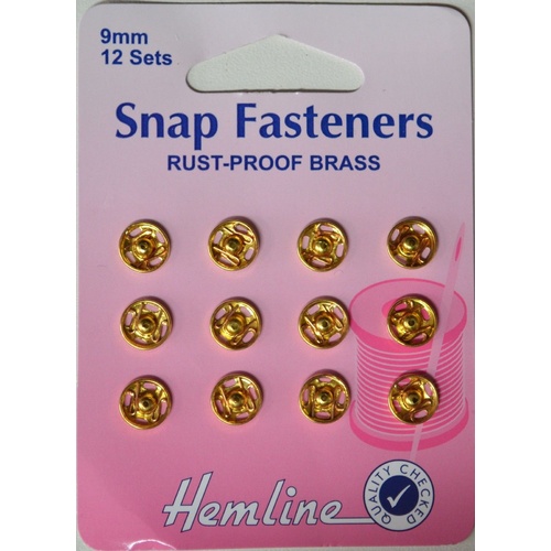 Hemline Metal Snap Fasteners, GOLD Colour, 9mm Dia., 12 Sets, Sew-In