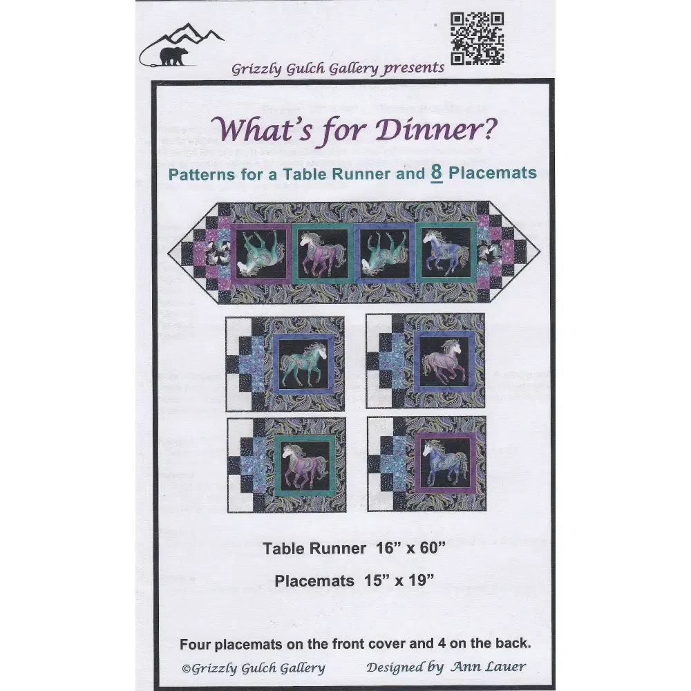 Horsen Around WHATS FOR DINNER Table runner & Placemats Pattern By Ann Lauer, Grizzly Gulch Gallery, Benartex Fabrics