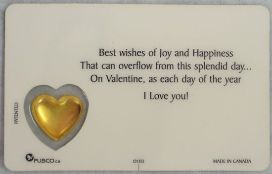 VALENTINE'S DAY, Inspirational Card & Heart Charm, 54mm x 85mm, Inspirational Gift, Card Made in Canada.