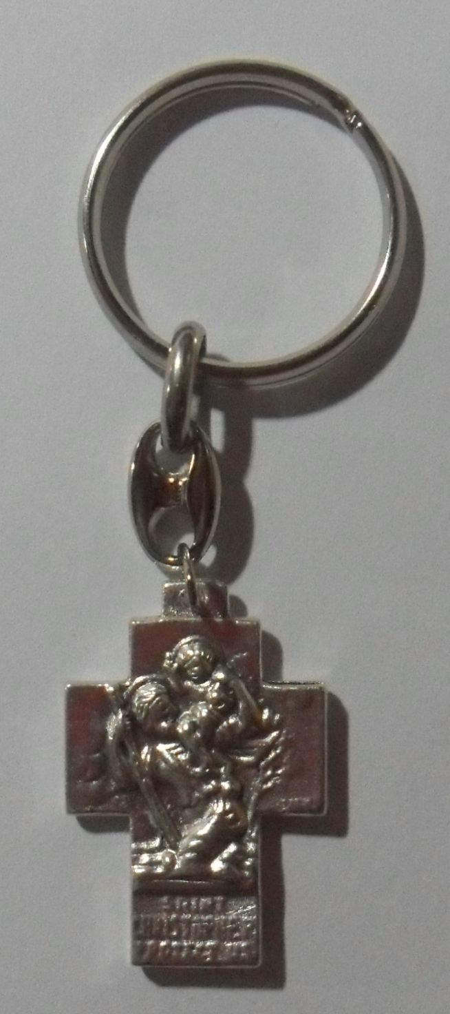 KeyRing Multi Subject, St Christopher, Joseph, Jesus & Mary, Cross 35x25mm Medal, 85mm Overall