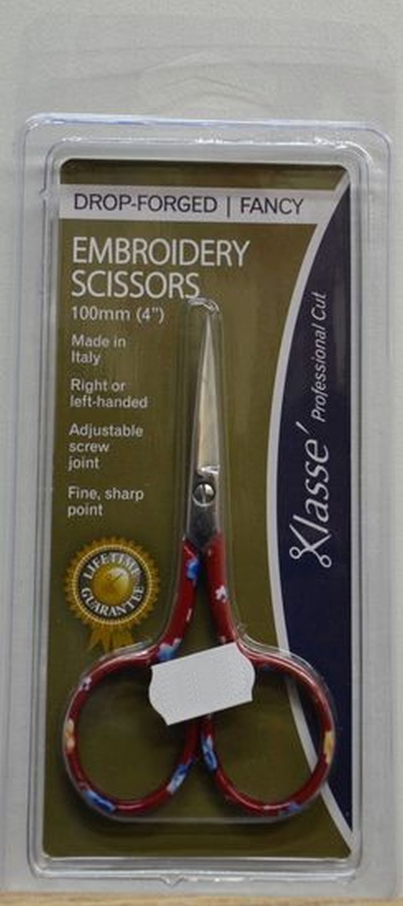 Klasse Drop Forged Fancy Embroidery Scissors, 100mm, 4", Professional Cut, Made in Italy