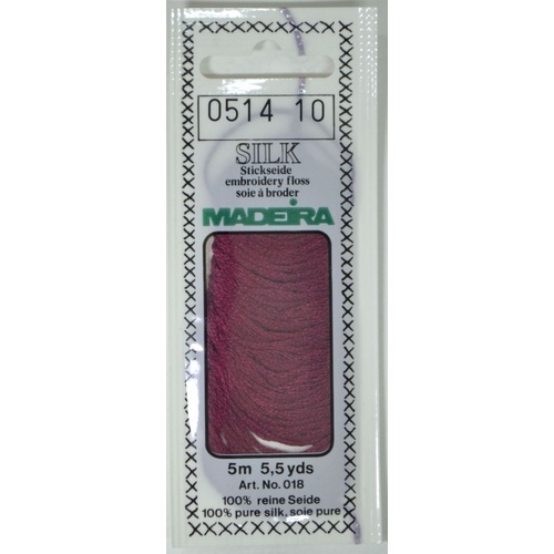 MADEIRA Silk is available in an amazingly large colour palette of 108 beautiful colours so is the preference for colourful variety for contrast or tone on tone embroidery. The high quality of this pure silk embroidery thread guarantees lustre and durability of precious needlework.
