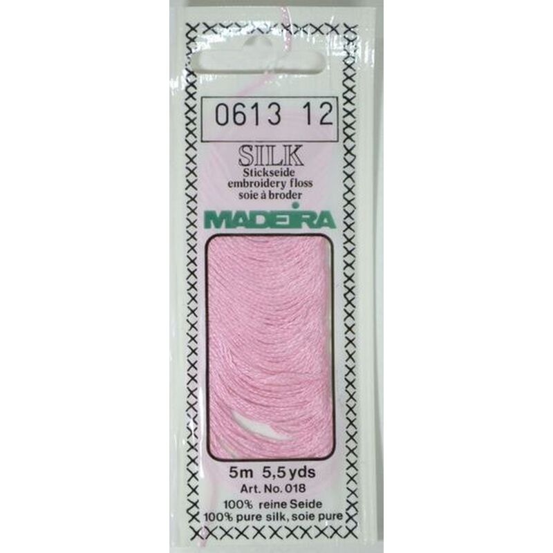 MADEIRA Silk is available in an amazingly large colour palette of 108 beautiful colours so is the preference for colourful variety for contrast or tone on tone embroidery. The high quality of this pure silk embroidery thread guarantees lustre and durability of precious needlework.