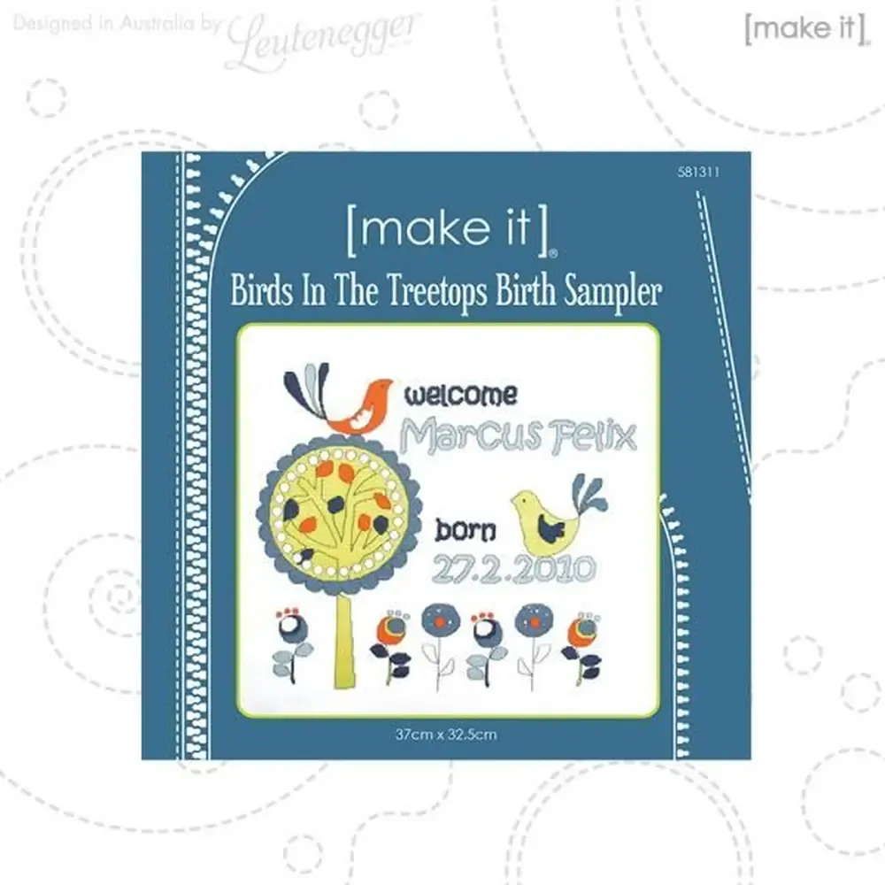 Make It, BIRDS IN THE TREETOPS BIRTH SAMPLER Counted Cross Stitch Kit,37cm x 32.5cm, #581311