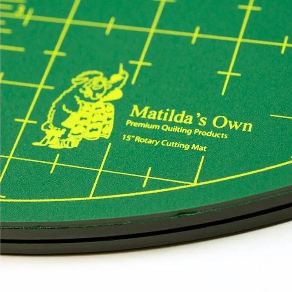 This Rotating Cutting Mat has a 360deg. rotation, spins on a sealed ball bearing base. Unlike Square shaped mats, Matilda's has more usable space as 100% of the mat is supported all of the time. Rotates easily with no maintenance required.