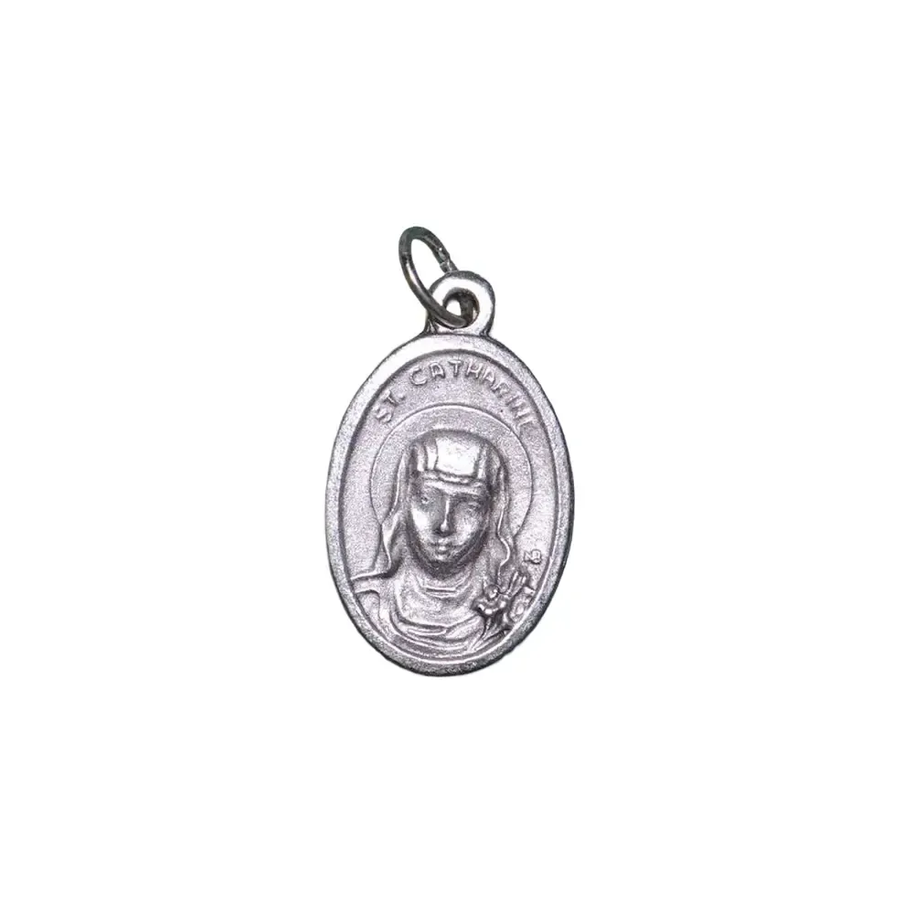 SAINT CATHERINE Medal Pendant, SILVER TONE, 22mm X 15mm, MADE IN ITALY