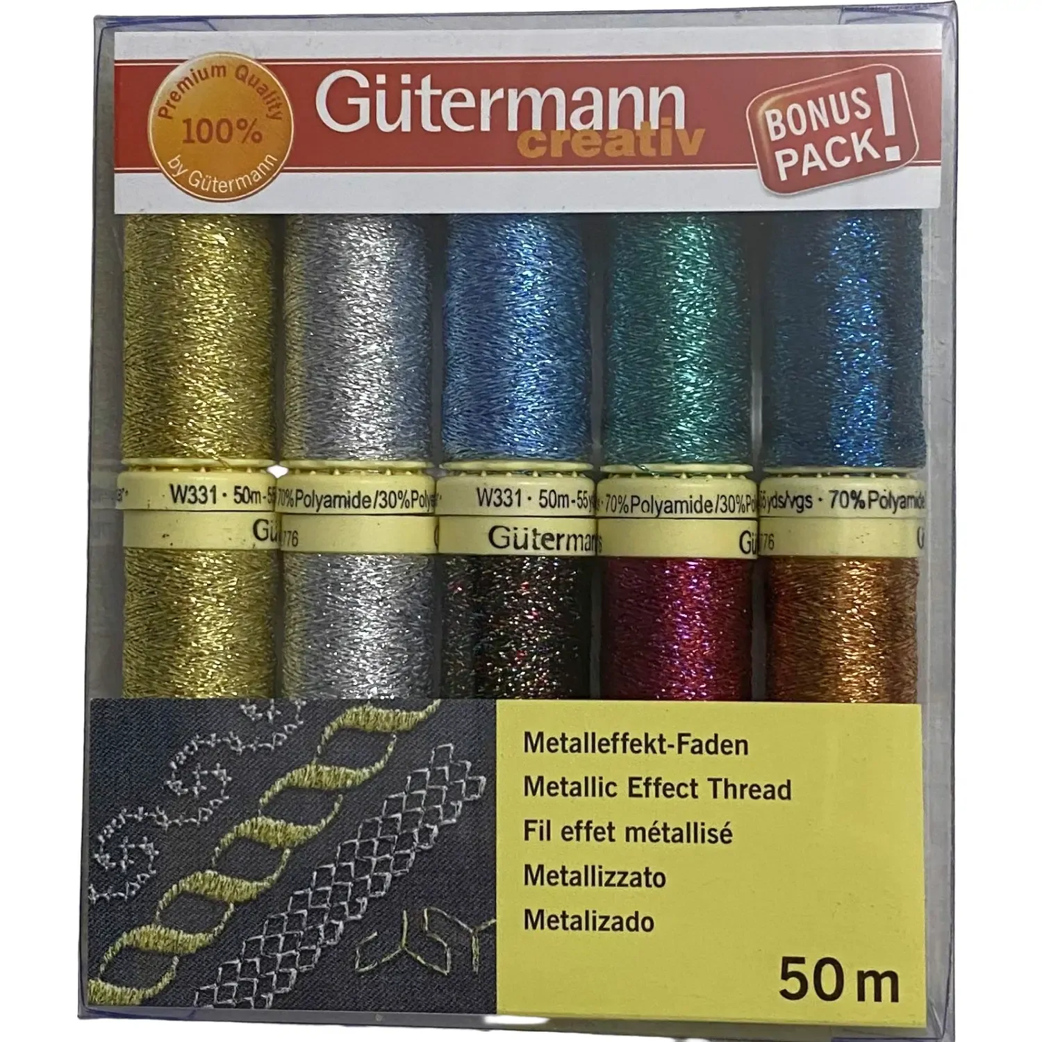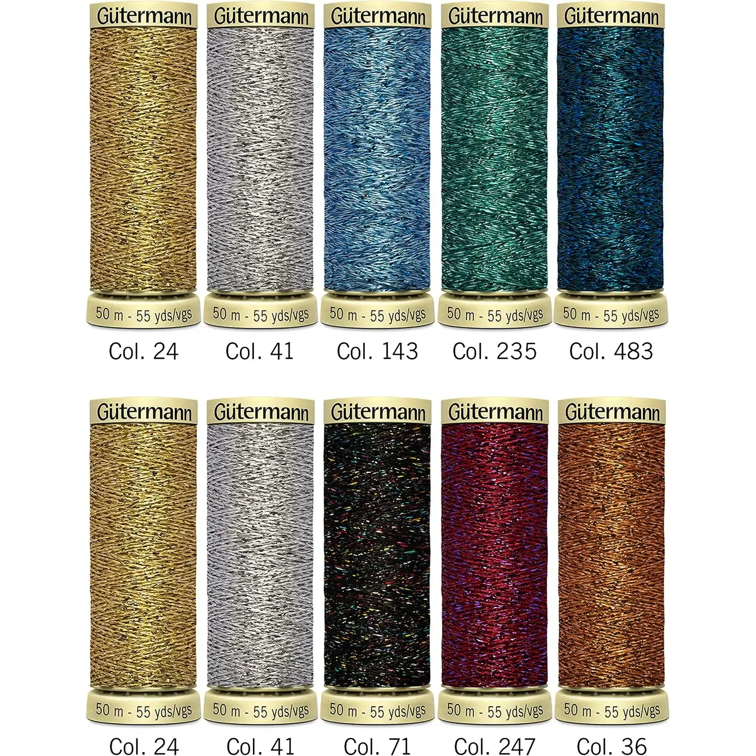 Gutermann Metallic Effect Thread 10 Pack, 50m Spools