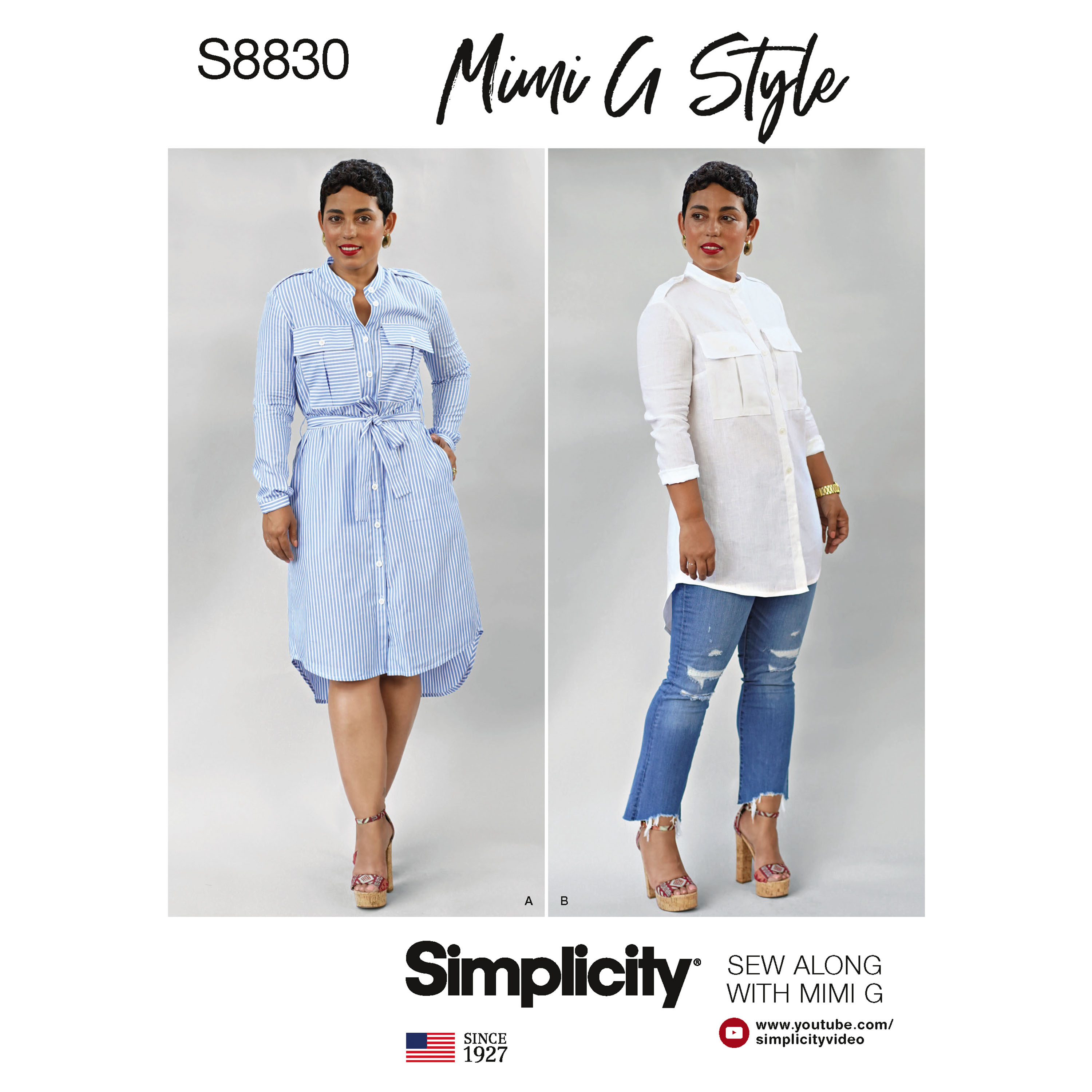 Misses'/Miss Petite shirt dress from designer Mimi G. Features working epaulets on shoulder and functional breast pockets. Design also includes side pockets and tie belt. Mimi G Style for Simplicity. Sew Along Video at www.youtube.com/simplicityvideo