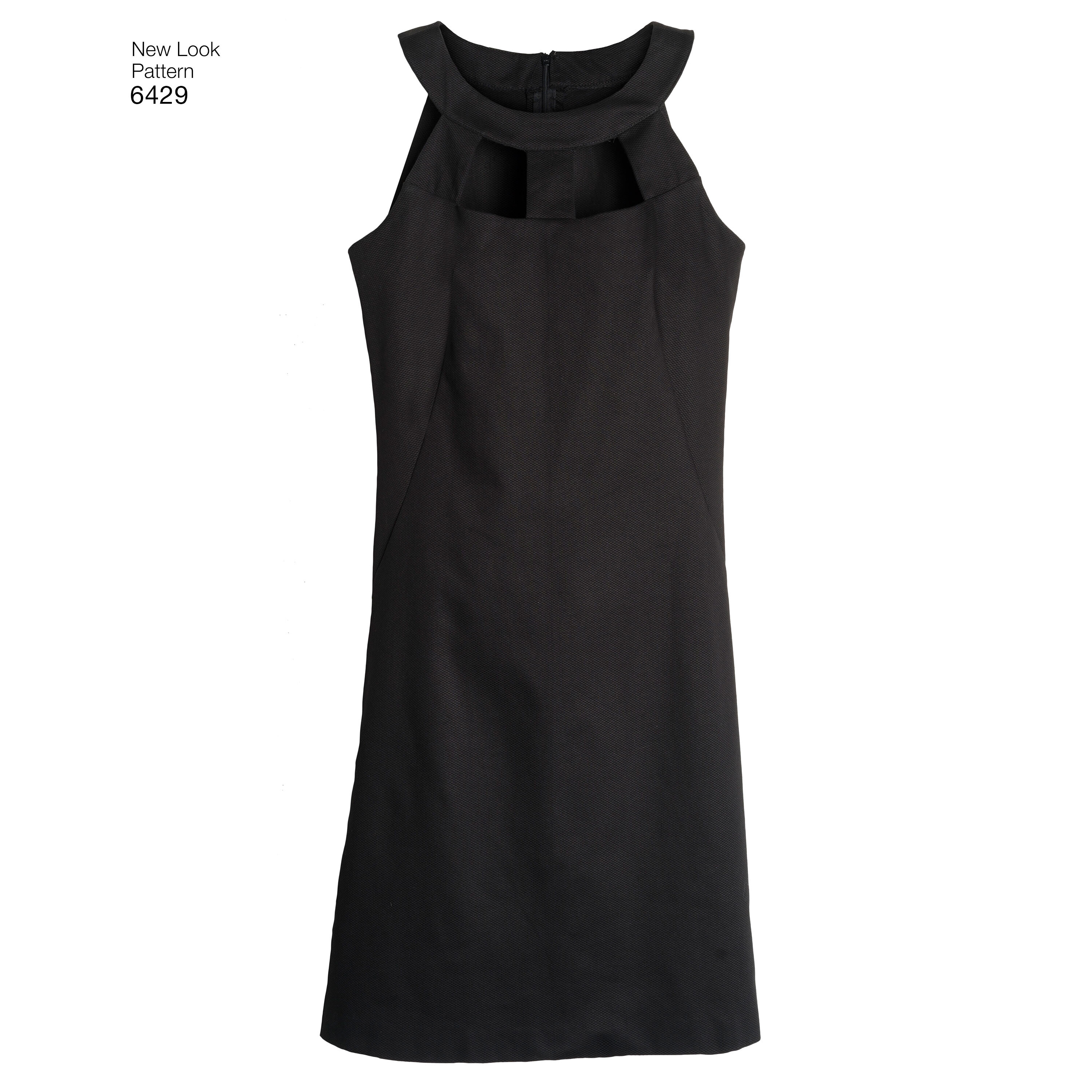Misses' dresses are perfect for both day and evening. Dress can be made with cap sleeves and optional sheer or lace insert, or sleeveless with optional cut out neckline. New Look sewing pattern.