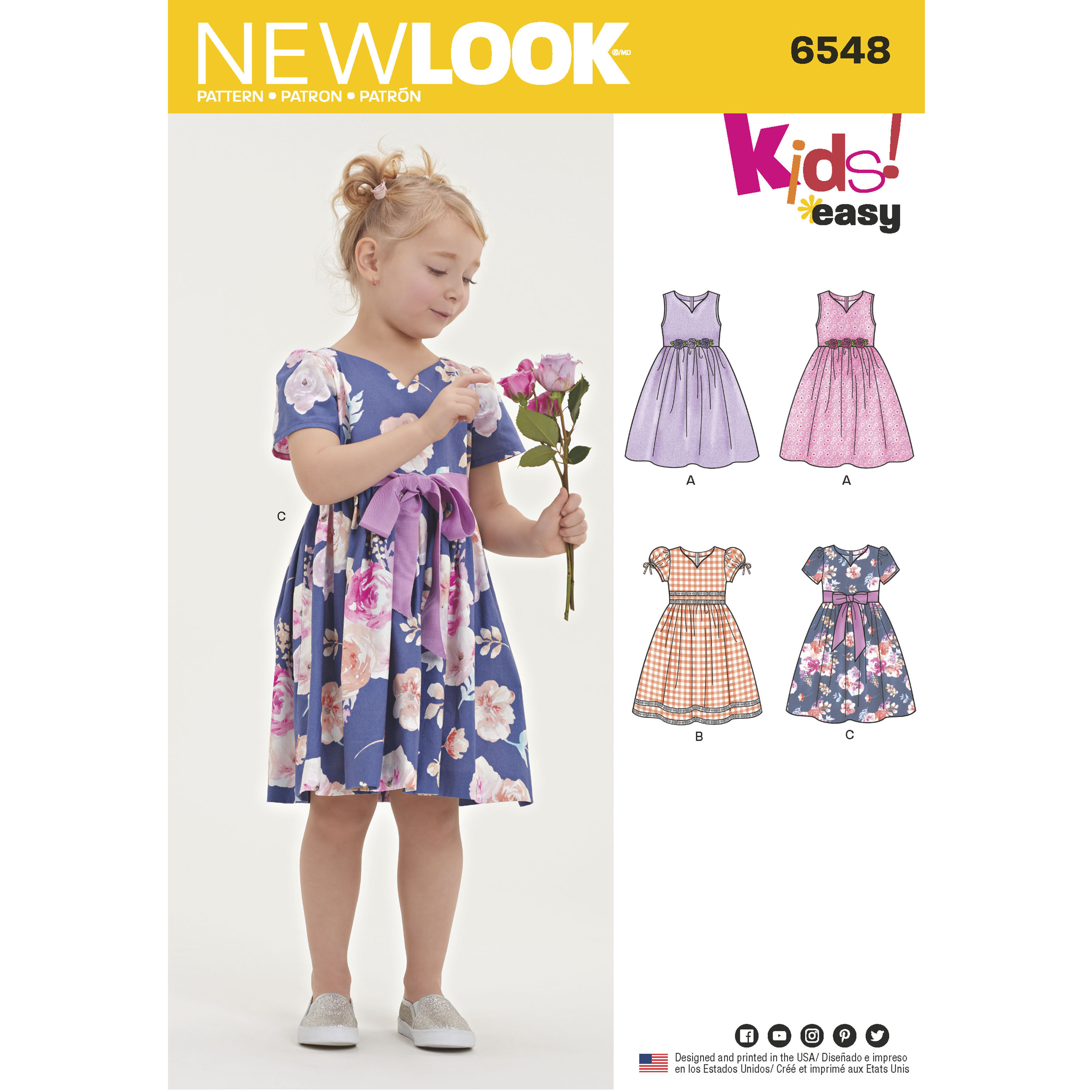It's such a joy to sew a child's special occasion dress! This pattern features a dirndl dress with a sweetheart neckline and sleeve variations. Click "Envelope Back" directly above for more information. New Look sewing pattern.