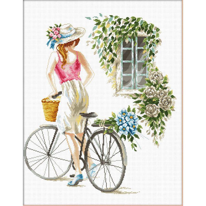 No Count Cross Stitch Kit Bicycle Girl, 43 x 51cm