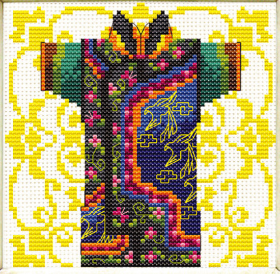 No Count Cross Stitch Kit, Male Geisha Green, 12 x 12cm