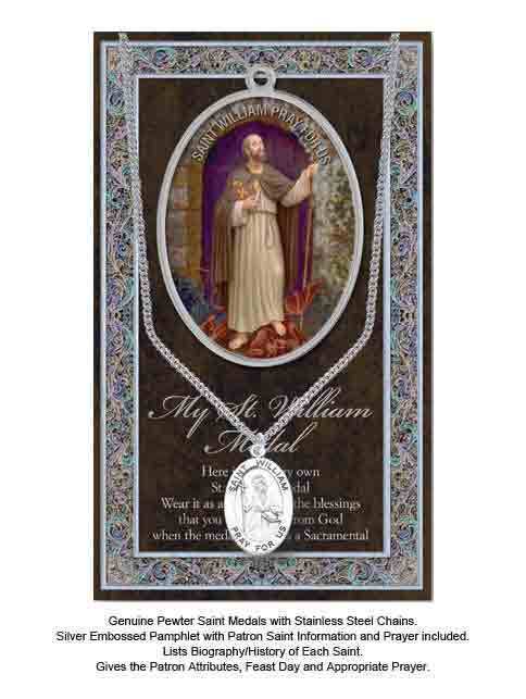 High Quality Pewter Saint William Medal Pendant, 15 x 24mm Oval, Stainless Steel Chain & Biography (Please note item size, images are close up enlargements)